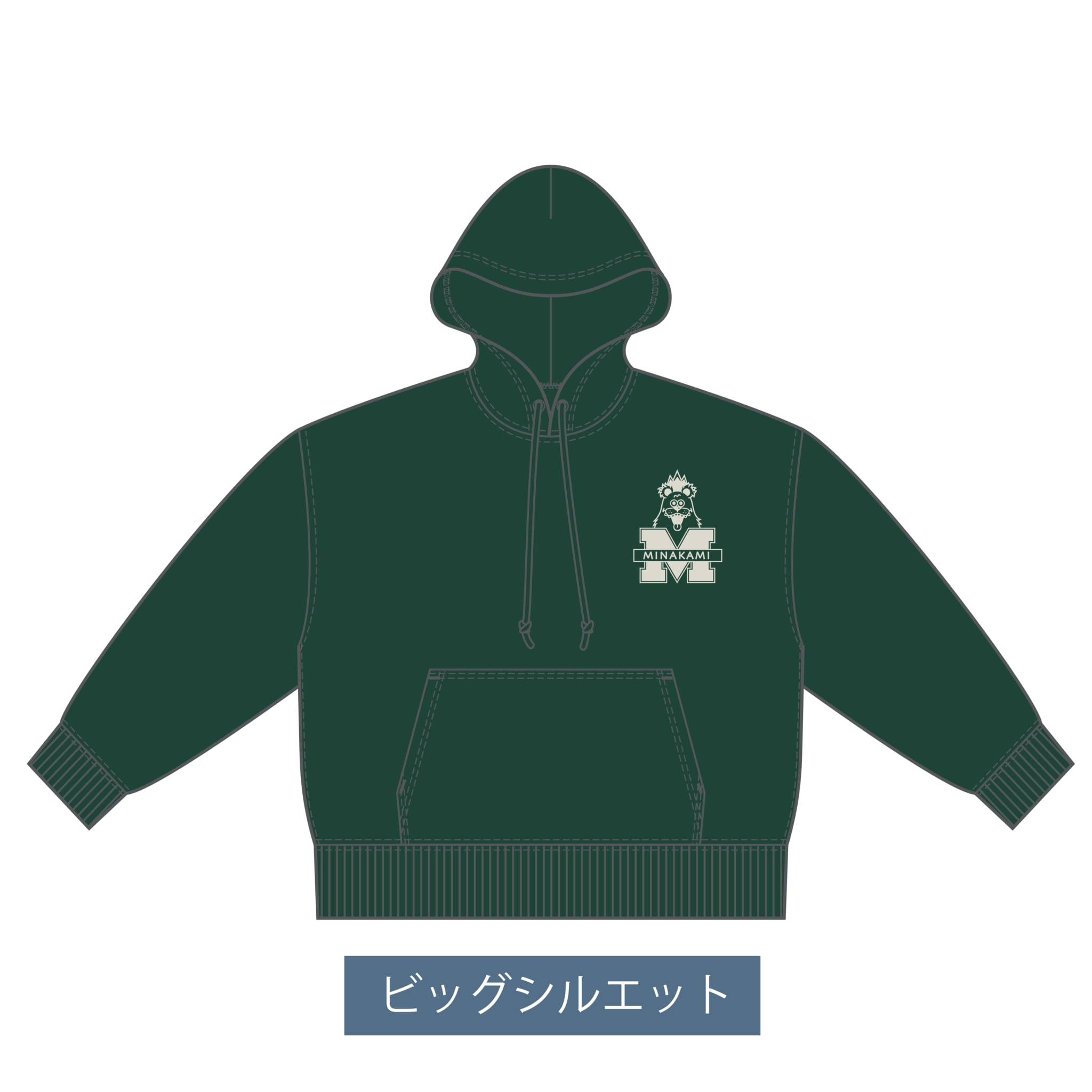 通常のパーカーより、やや大きめに仕上げたビッグシルエット。ゆったりとした着心地で、リラックス感のある一着です。胸元にはさりげないワンポイントロゴ、背中には存在感のあるロゴデザインをプリント。落ち着いたグリーンカラーで、普段使いはもちろん、移動時やスポーツシーンにも◎。フード付き&裏起毛仕様で、防寒性もあり、これからの季節に活躍してくれるアイテムです。